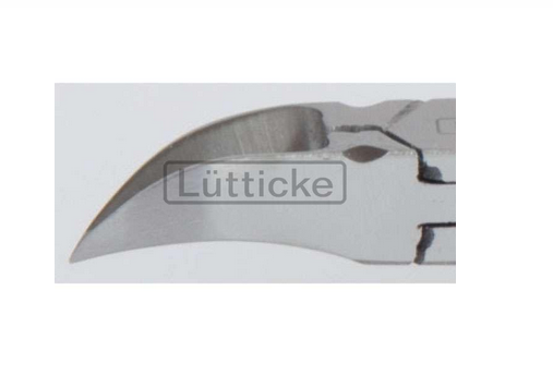Cęgi wykonane są z wysokiej jakości stali nierdzewnej (Edelstahl Rostfrei), odpornej na korozję oraz działanie preparatów chemicznych stosowanych w dezynfekcji i sterylizacji. Ostrza zostały precyzyjnie wyprofilowane, co pozwala na czyste, równe cięcie płytki paznokciowej bez jej miażdżenia, minimalizując ryzyko mikropęknięć i rozwarstwień.