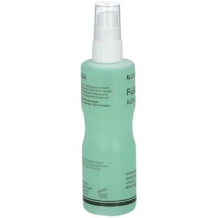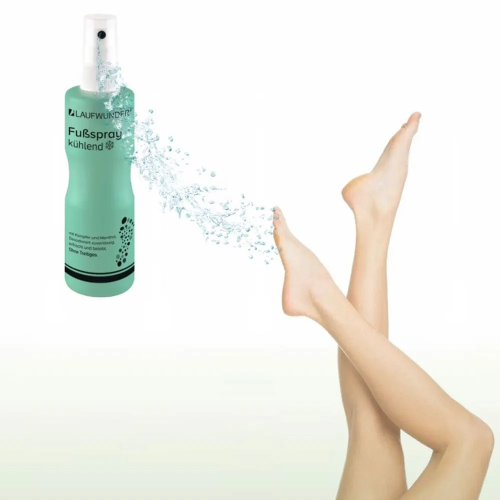 Dezodorant do stóp w sprayu Laufwunder Fusspray dostępny jest w poręcznej butelce o pojemności 150 ml, dzięki czemu można go stosować w salonie kosmetycznym, podczas intensywnego treningu, jak i w upalne dni. Gaz treibgas, znany z walorów odświeżających, umożliwia równomierne rozprowadzenie dezodorantu, oferując natychmiastowy efekt chłodzenia i regeneracji zmęczonych stóp.