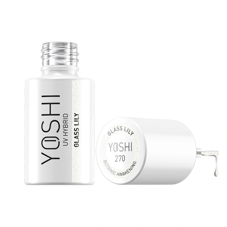 Glass Lily 270 Yoshi to jasna, czysta mleczna biel inspirowana naturalnym światłem i delikatnością pastelowych stylizacji. Kolor należy do kolekcji Botanic Awakening, która opiera się na lekkich, subtelnych odcieniach z delikatnym efektem rozświetlenia.