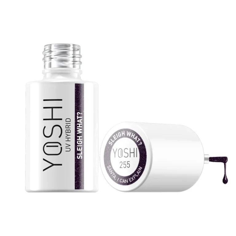 Lakier hybrydowy YOSHI 255 Sleigh What? to głęboki, śliwkowo-bordowy odcień z miękkim, eleganckim blaskiem, który pięknie odbija światło i dodaje stylizacji klasy z nutą dramatu. Lśni jak satynowa wstążka zawiązana w ostatniej chwili na prezencie – niedoskonałym, ale dokładnie takim, jaki ma być.