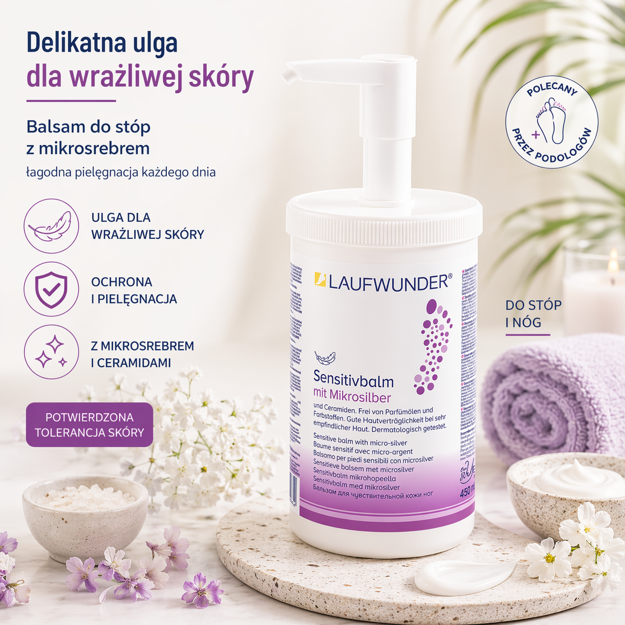 Laufwunder Balsam Sensitive z mikrosrebrem do Stóp 450 ml z dozownikiem