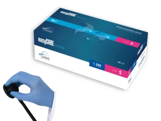 Rękawiczki nitrylowe bezpudrowe jednorazowe niebieskie ZARYS – rozmiar S (100 szt.)